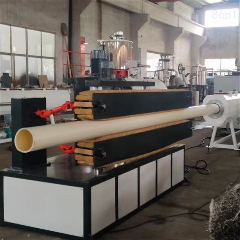 PVC塑料管材生产线该机组由锥形双螺杆挤出机、真空定型机、牵引机、切割机、翻料架等组成。挤出机及牵引机采用交流变频器调速装置,真空泵牵引电机均采用优质产品。牵引有二爪、三爪、四爪、六爪、八爪、十爪、十二爪等牵引方式。